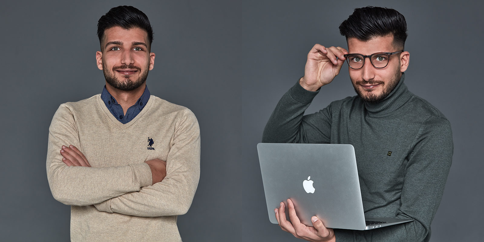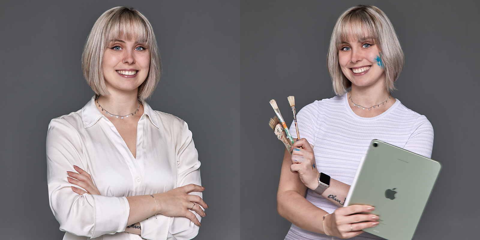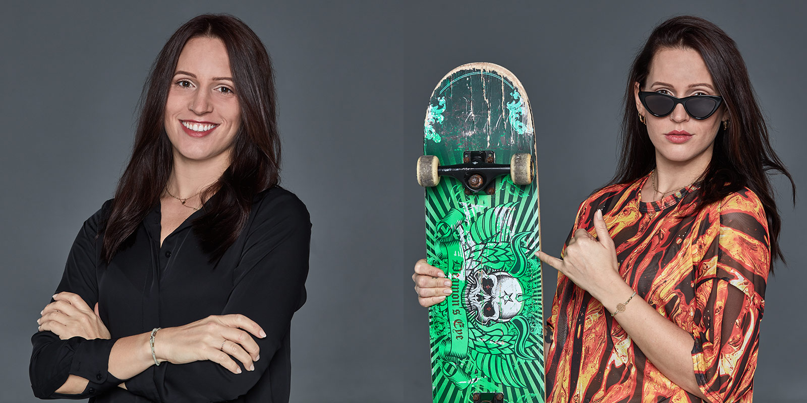 Hinter neuen Geschäftsideen stehen Menschen. Je digitaler die Welt, desto wichtiger ist es, vor allem die Menschen zu zeigen, mit denen wir arbeiten und Geschäfte machen. Lebendig und facettenreich sind die gegensätzlichen Bildpaare, die durch mouseover animiert werden. Sie geben Webseiten einen frischen und innovativen Look. Sie machen Mitarbeiterinnen und Mitarbeiter zu interessanten Personen, mit mehr als nur einem Gesicht. Ob Shopping-Queen oder Fußballer, Leseratte oder Skaterin – wir haben die Hobbys mit wenigen Requisiten inszeniert und in Kontrast zu den Businessbildern gesetzt.